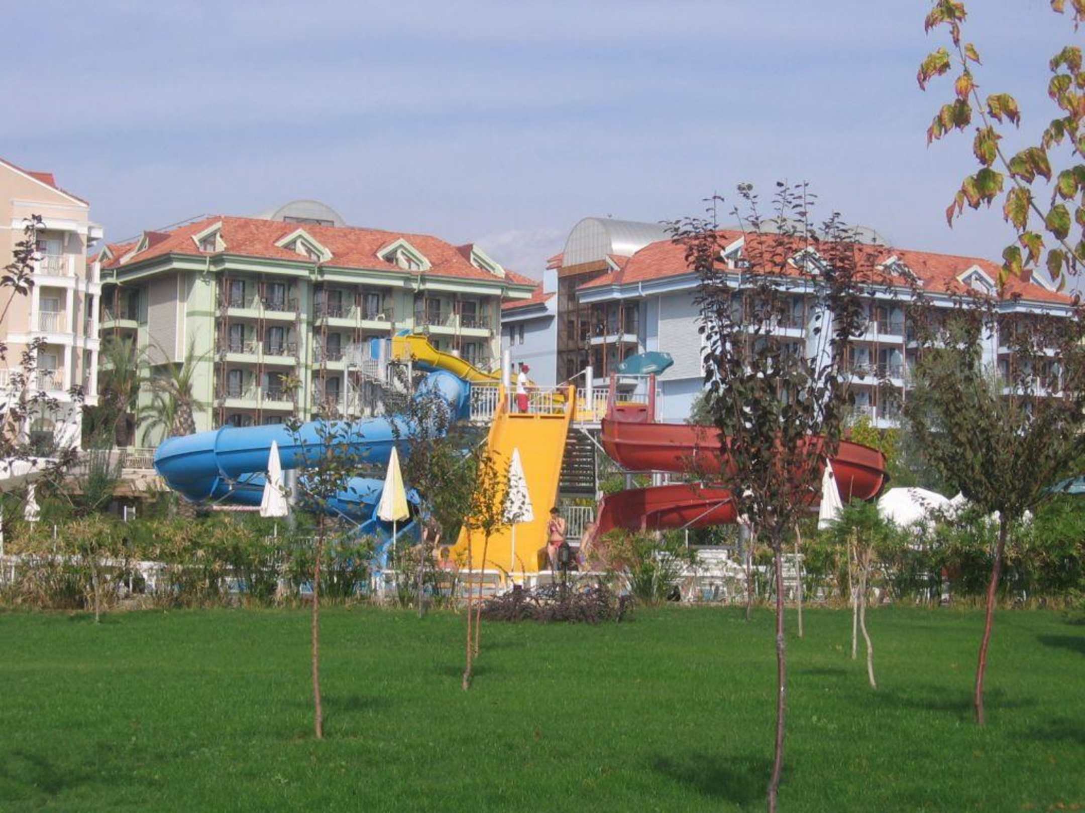 Pool mit den großen Rutschen2 Pools mit Rutschen stehen zur Verfügung. Dieser ist der größere. Desweiteren gibt es noch einen Kinderpool mit Rutschen