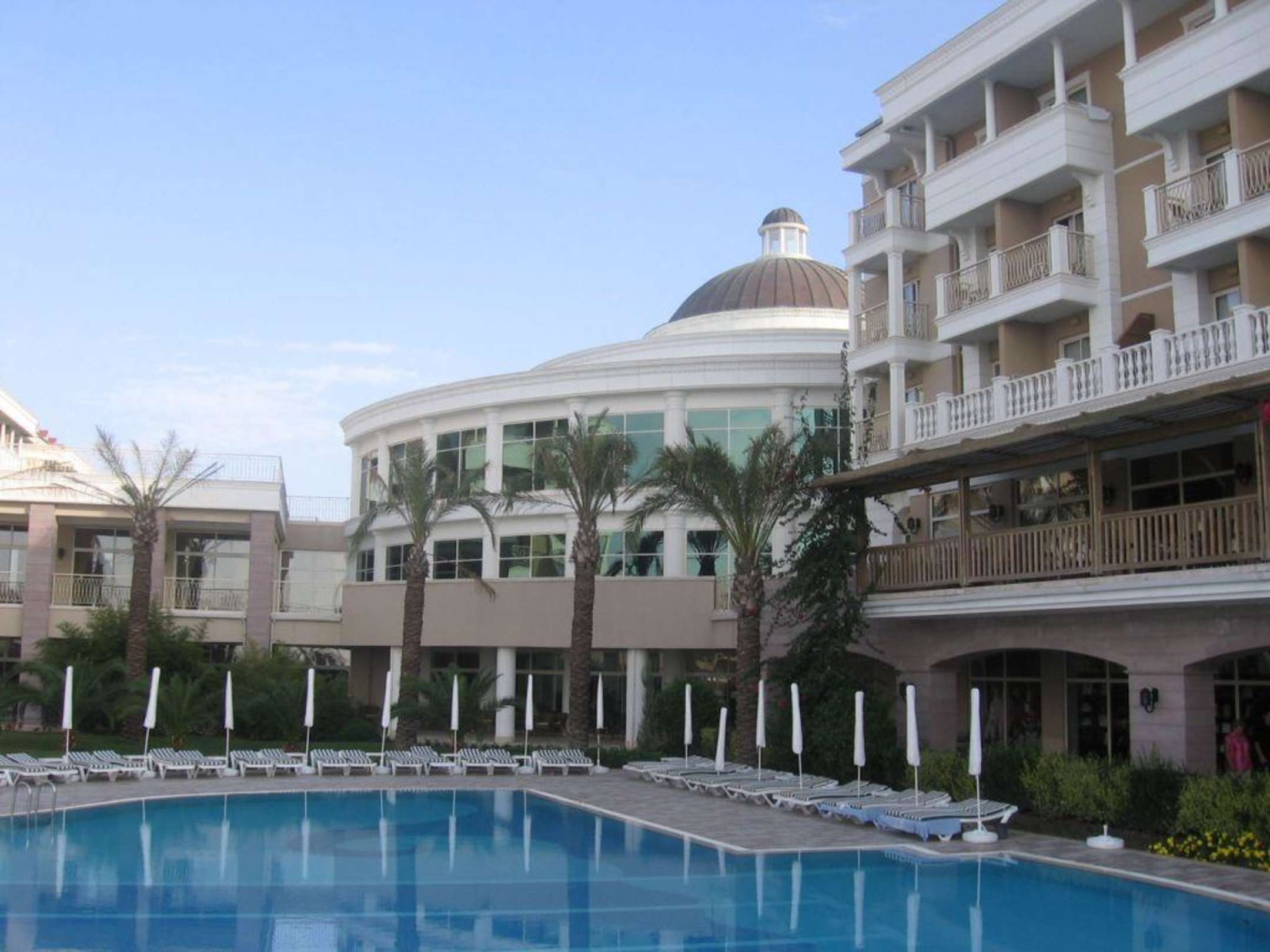EingangsgebäudeIn dem runden Gebäude befindet sich die Lobby, Rezeption und in der unteren Etage Geschäfte und eine Bar