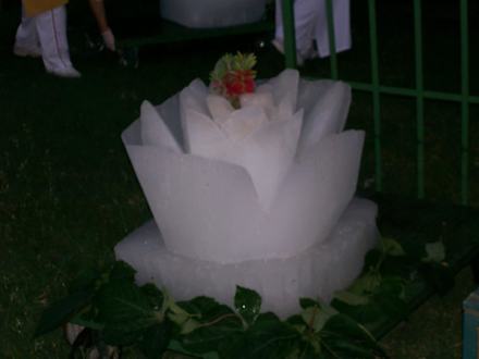 Eisblume...im wahrsten Sinne des Wortes. Diese Rose wurde aus einem Eisblock mit einer Kettensäge am Gala-Abend "geschnitzt"