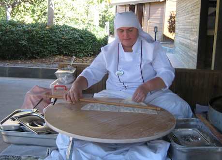 Zubereitung von köstlichem, gefüllten FladenbrotDie Zubereitung erfolgt durch die Spezialistin Frau Ayse.