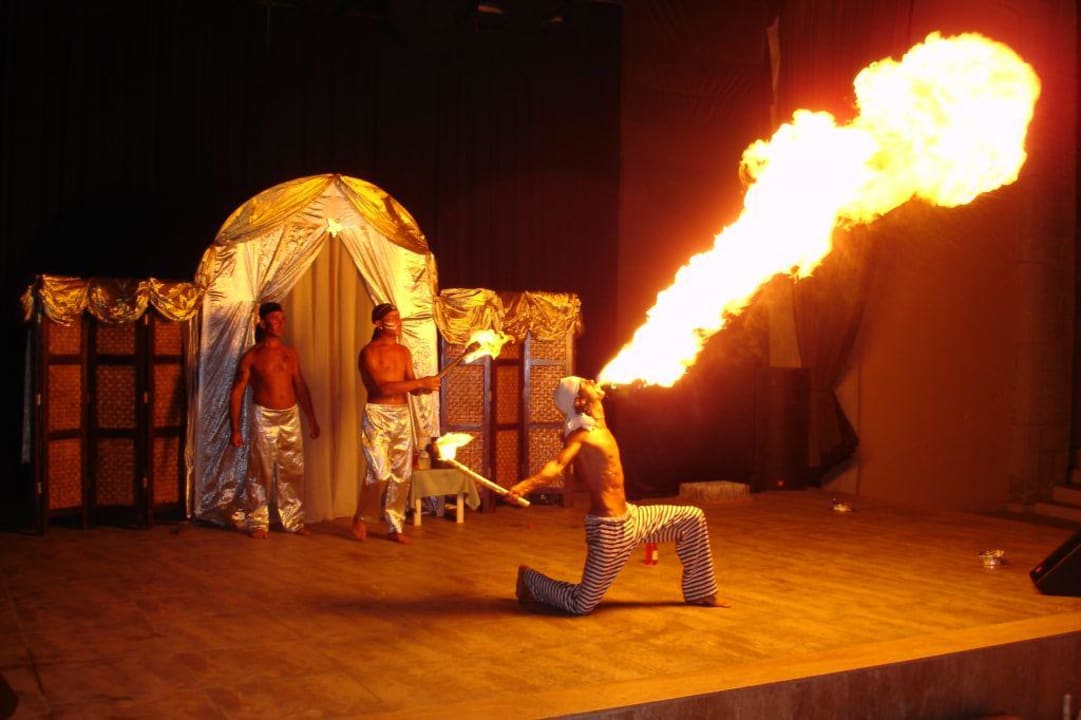 Hier ein Bild von der Abendanimation mit dem Feuerspucker.