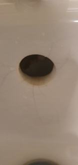 Überlauf Waschbecken und eingerissenes Waschbecken.