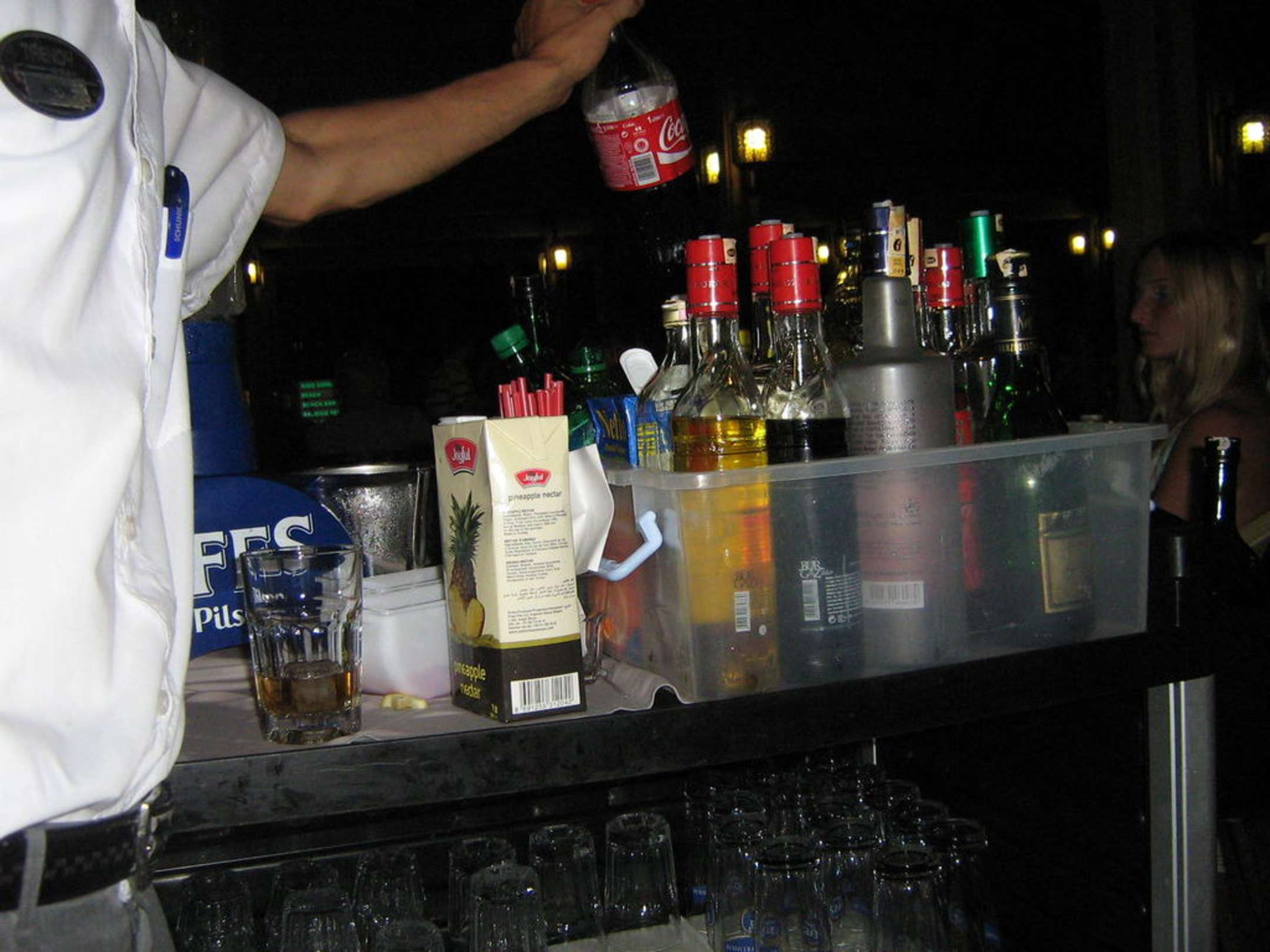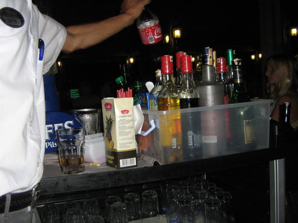 der Kellner kam regelmäßig am Tisch mit seinem prall gefüllten Getränkewagen vorbei