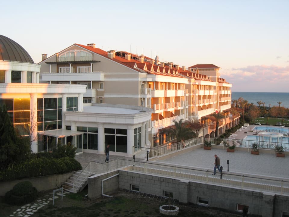 Seitl. Blick aus dem Zimmer über die Anlage