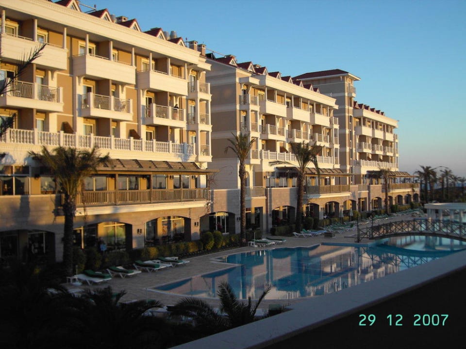 Poolbereich und linker Trakt des Hotels
