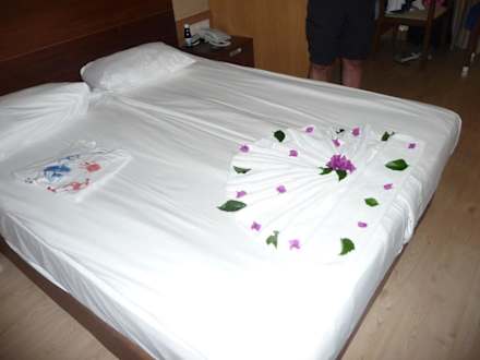 Die Putzfrau hat uns mit einem Handtuch ein wunderschönes Bett gemacht. Danke.