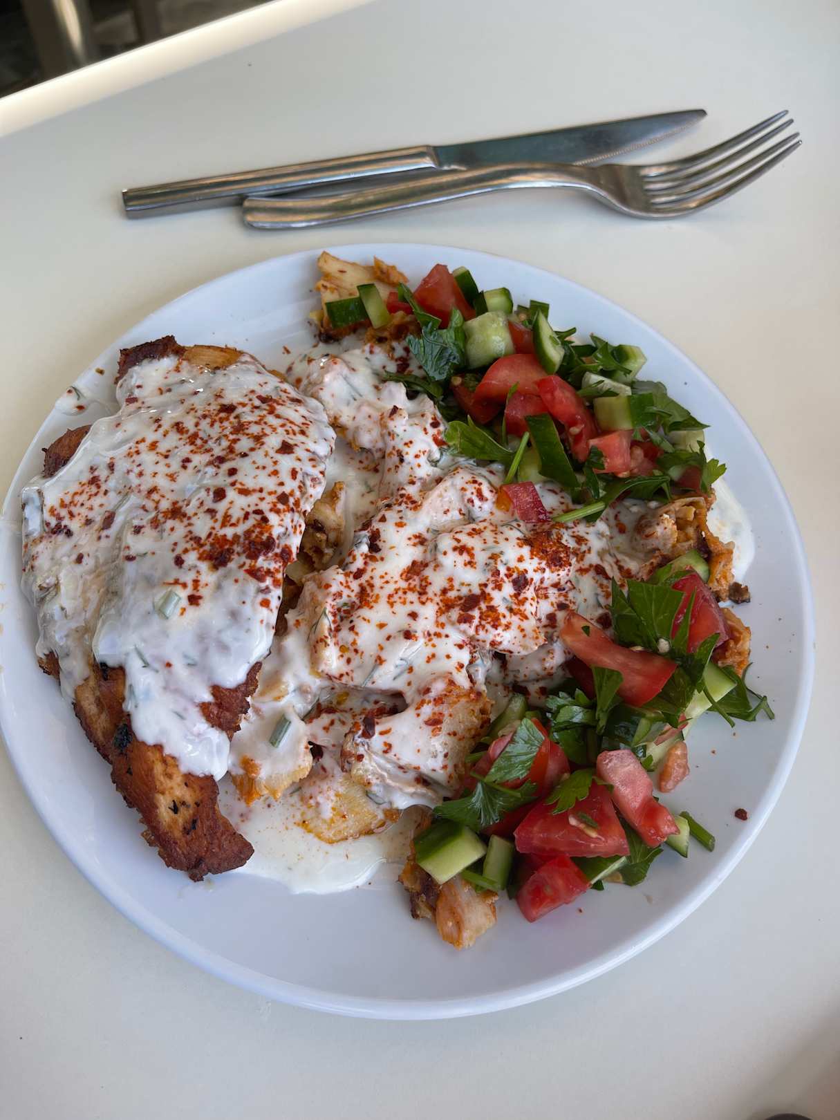 Lieblingsmittagessen Hähnchen Döner mit Salat an der Strandbar super lecker