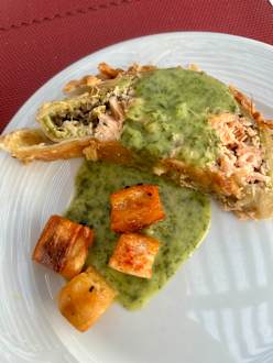 Hauptrestaurant Lachs im Blätterteig mit Spinat Sauce, Mega lecker