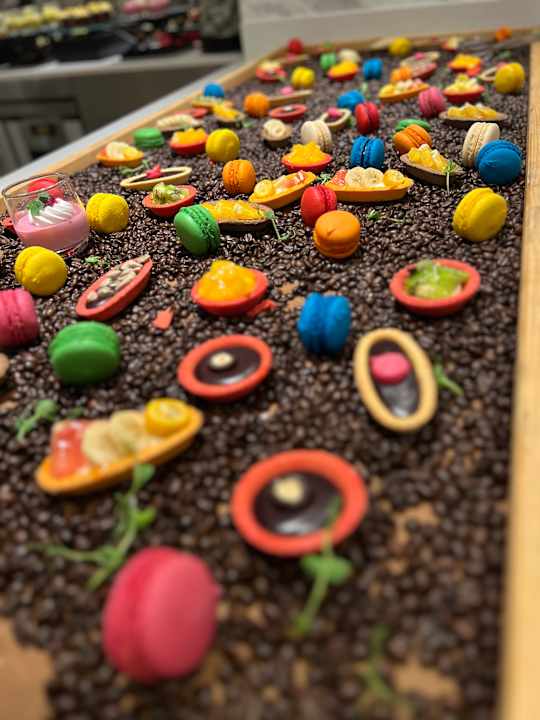 Traumhaft schöne Nachtisch Kreationen wie diese auf Kaffeebohnen platziert 🥰👌