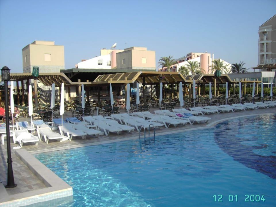 Poolbar und Teil des Pools am Morgen