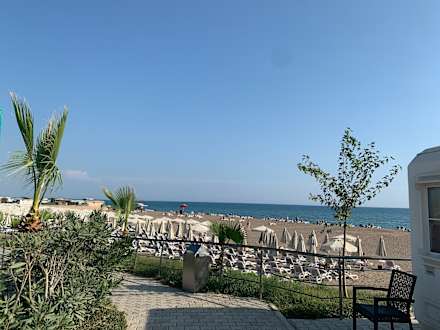 Sehr grosse und schöne Strand mit viele Liege und Beachrestaurant.