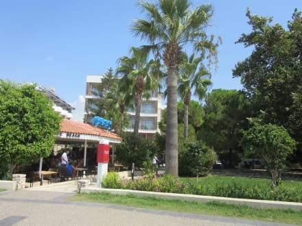 Blick aufs Hotel und die Snackbar von der Strandpromenade aus