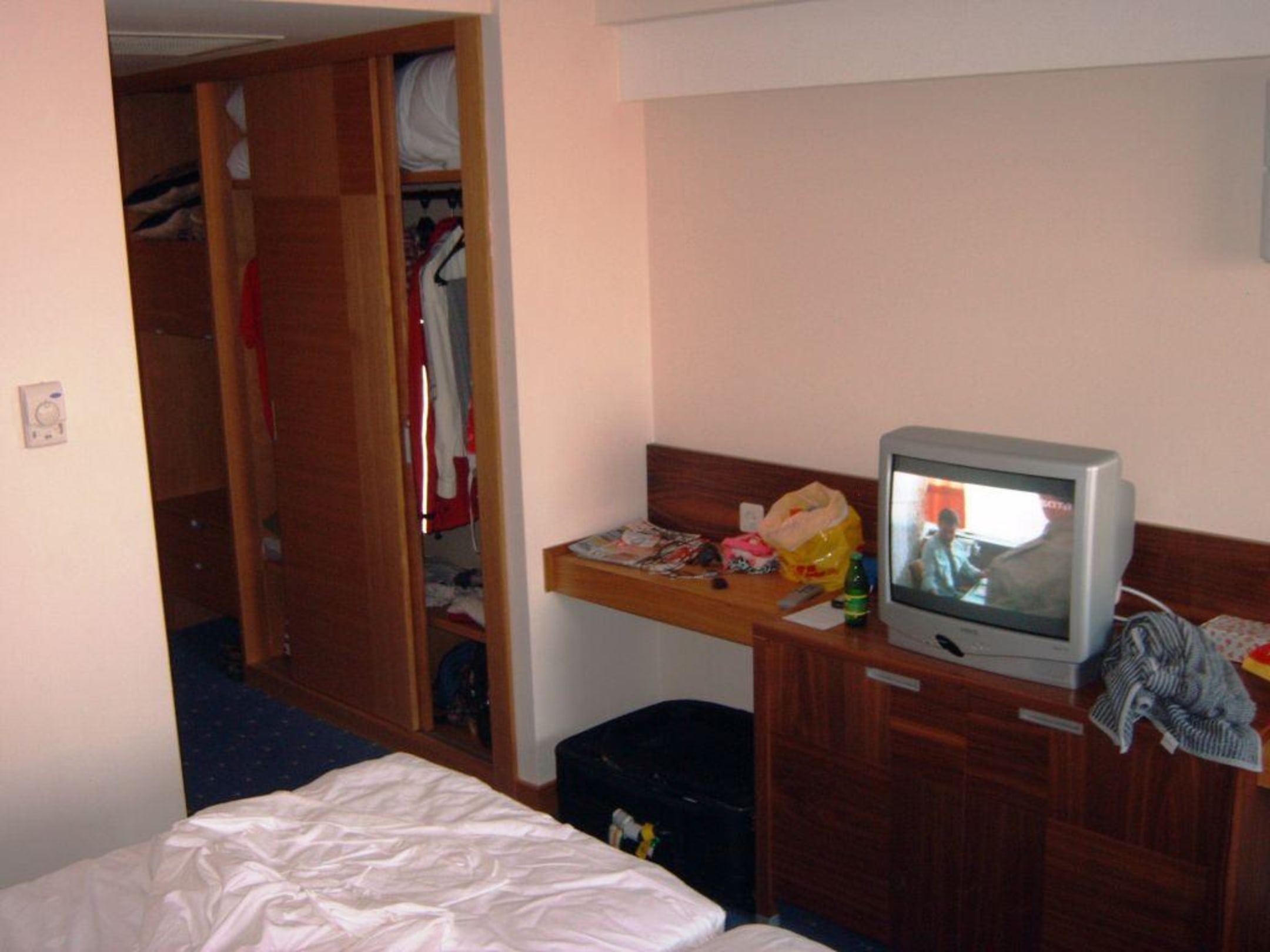 ZimmerUnser "noch nicht aufgeräumtes" Zimmer mit Blick auf Flur mit großen Schiebetür Schränken und TV