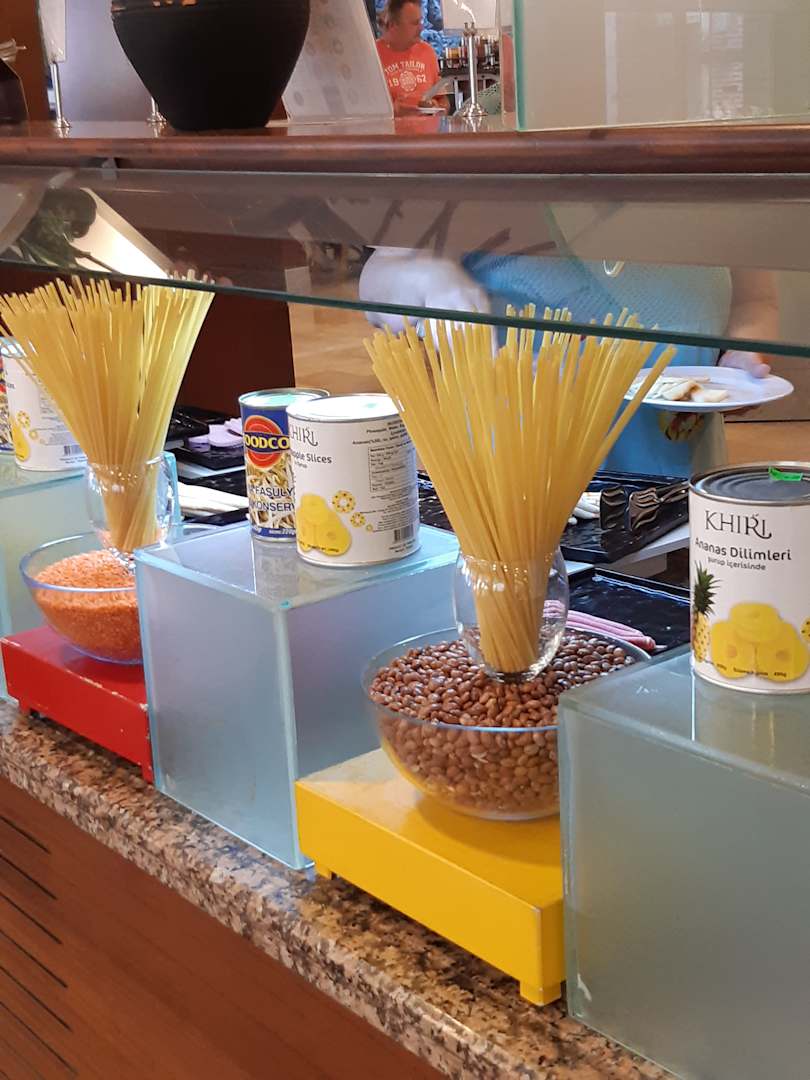 Büffetdekoration...Nudeln und Konservendosen...
