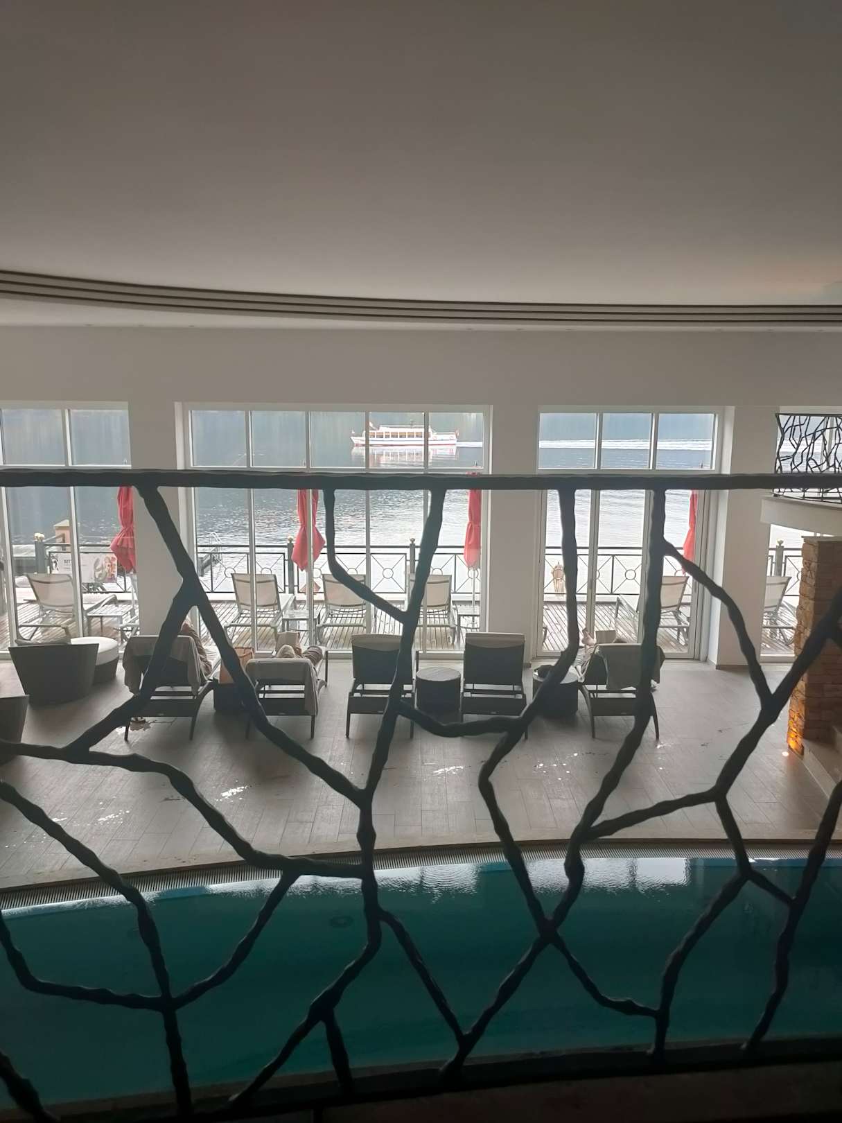 Blick von der Empore des Pools auf den See