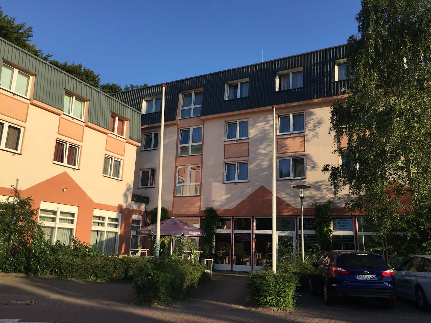 Blick zum Hotel vom Parkplatz