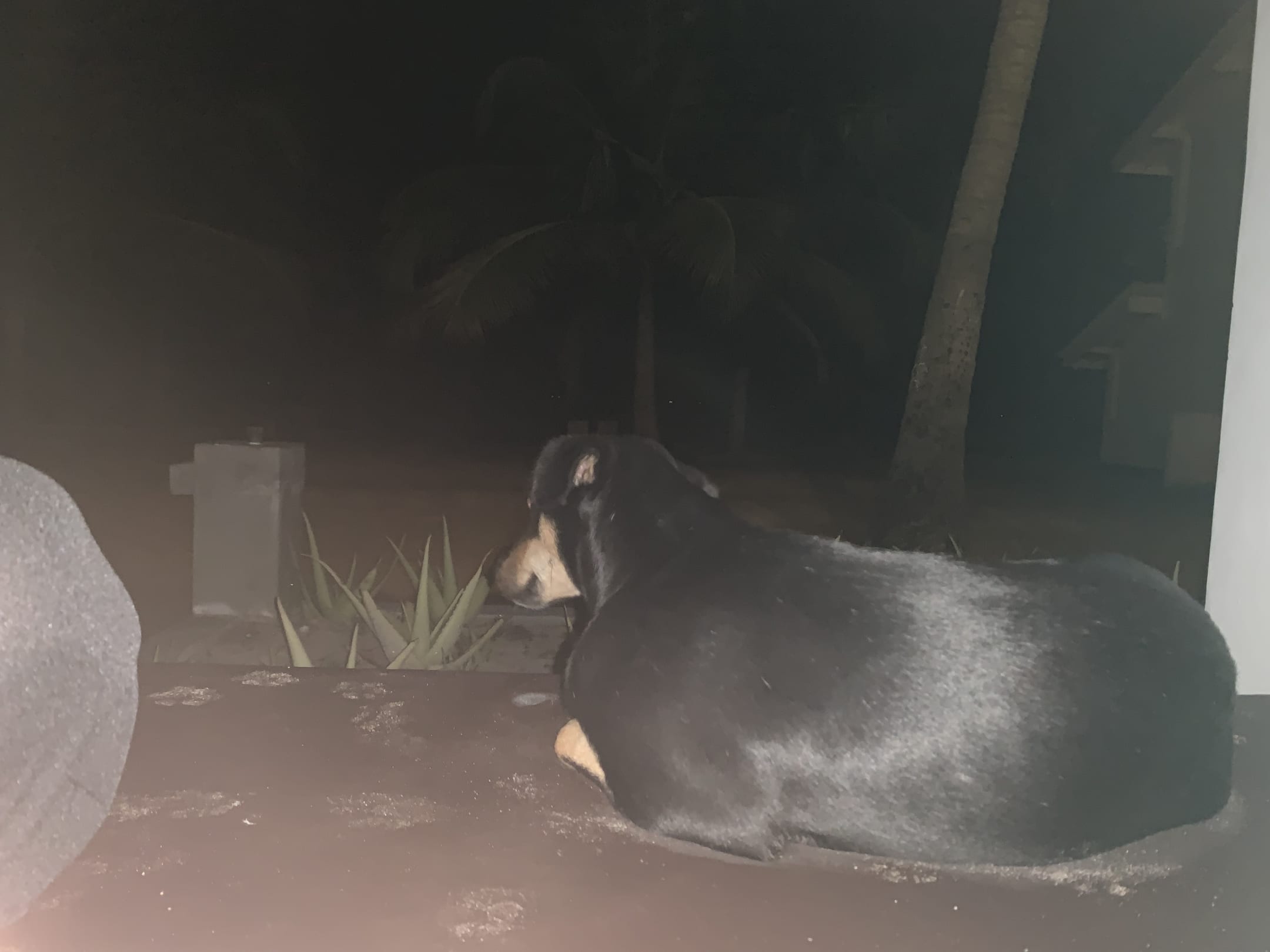 Die straßenhunde liegen nachts auf der Terrasse