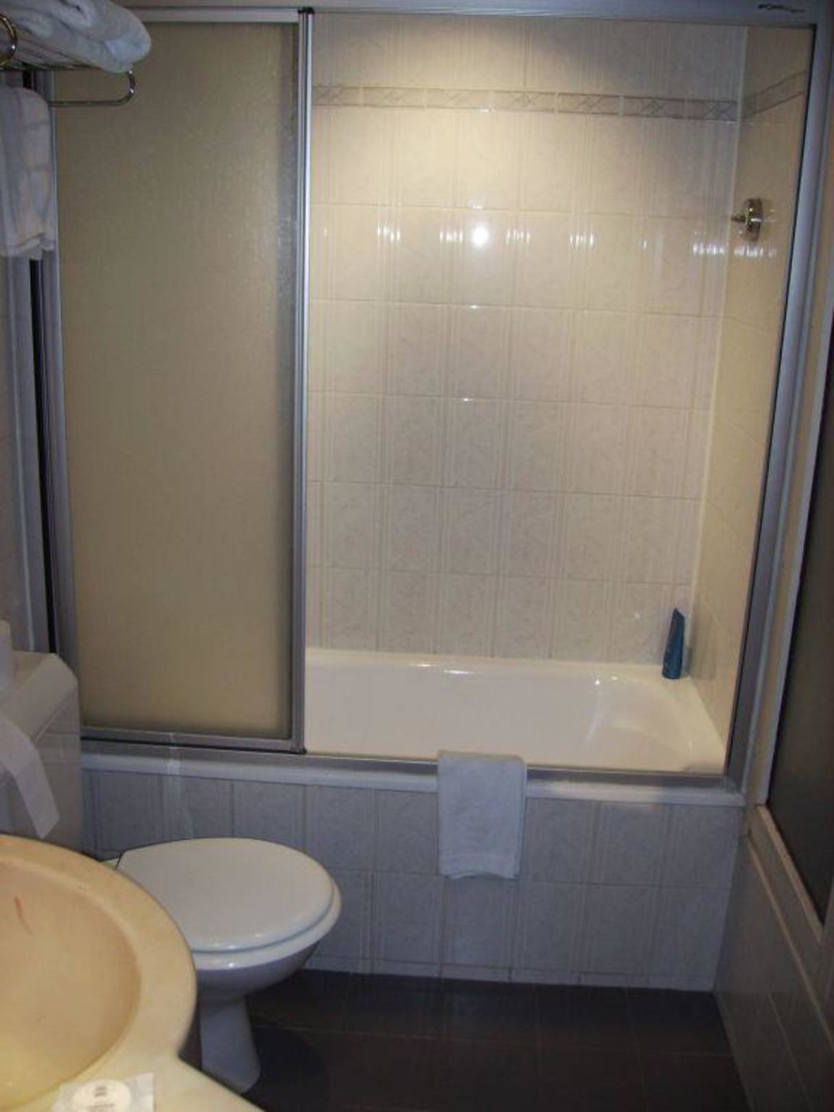 Bad mit Badewanne, WC und Waschbecken.