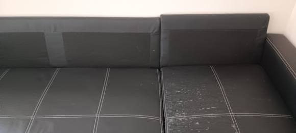 ZimmerAbgewetzte Couch, es gab anscheinend dazugehörig Kissen, diese waren aber nicht mehr vorhanden.