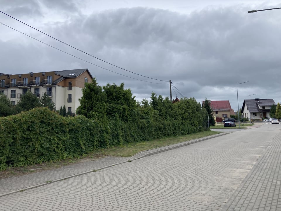 Links das Hotel rechts die Nebenstraße