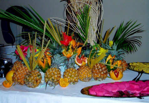 Dekoration auf dem BuffetDas Buffet mit mauritianischen Speisen fanden wir immer sehr lecker - und schön anzusehen!