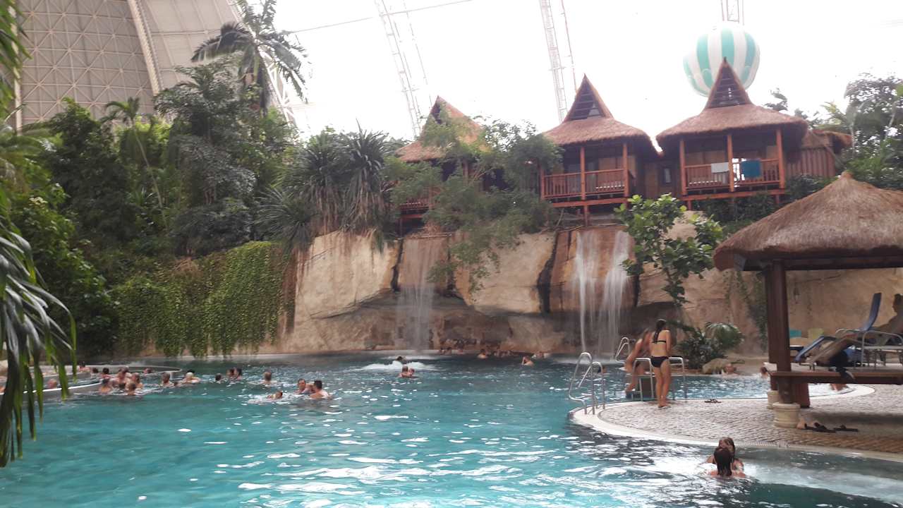 PoolIn der Lagune ist es wunderschön. Zwei große Becken ein mit einander verbunden. Für Groß und Klein gibt es separate Bereiche. In den Häusern kann man mitten im Regenwald übernachten. Es gibt noch viele andere Bereiche in der Halle, die schöne Plätze bieten