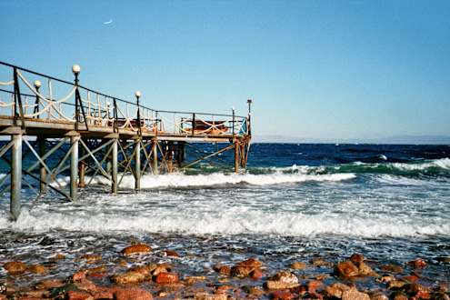 steg für taucher, schnorchler und schwimmer, da unmittelbar die korallen bis zum strand wachsen - nicht geeignet für nichtschwimmer, wassertiefe beim stegeinstieg ca 3 m