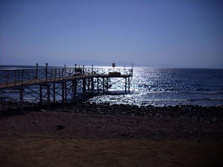 Der Steg über das kleine Riff ins Wasser hinein