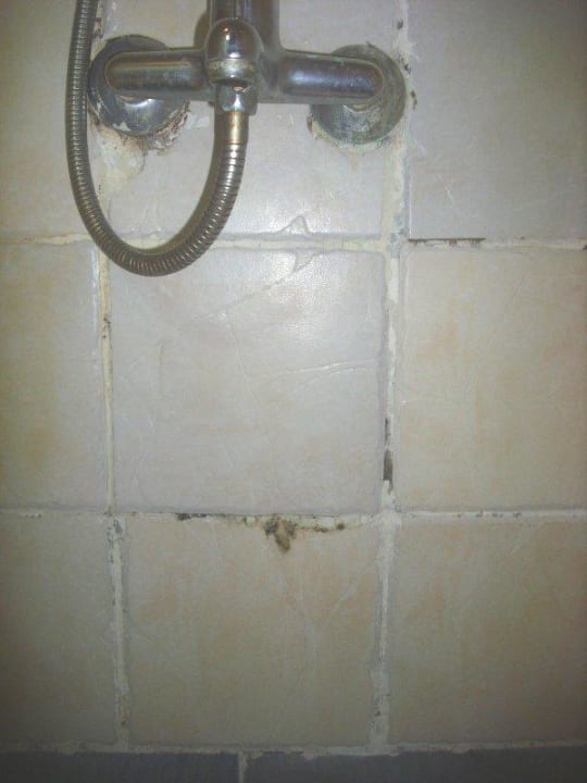 Armatur mit Schimmelfuge in der DuscheSo sah die "renovierte Dusche" aus. Wasser wurde eigenständig heiß und kalt - wie bei allen im Hotel.