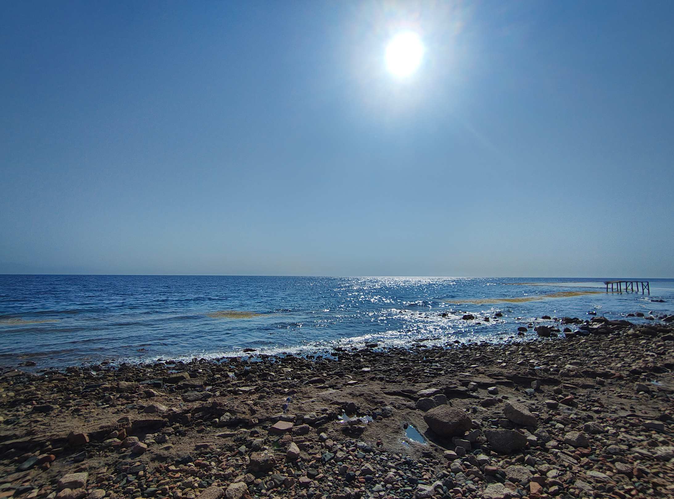 Das Südende des Strands, hier der steinige Streifen zwischen Wasser und Strand