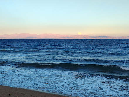 Bei guter Sicht scheinen die Gebirge Saudi Arabiens zum Greifen nah
