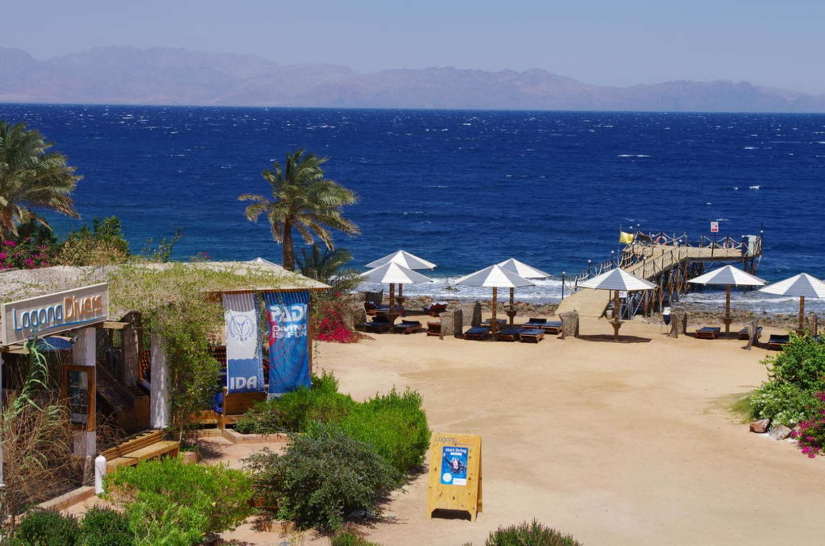 Blick am Zimmer zur Tauchbasis