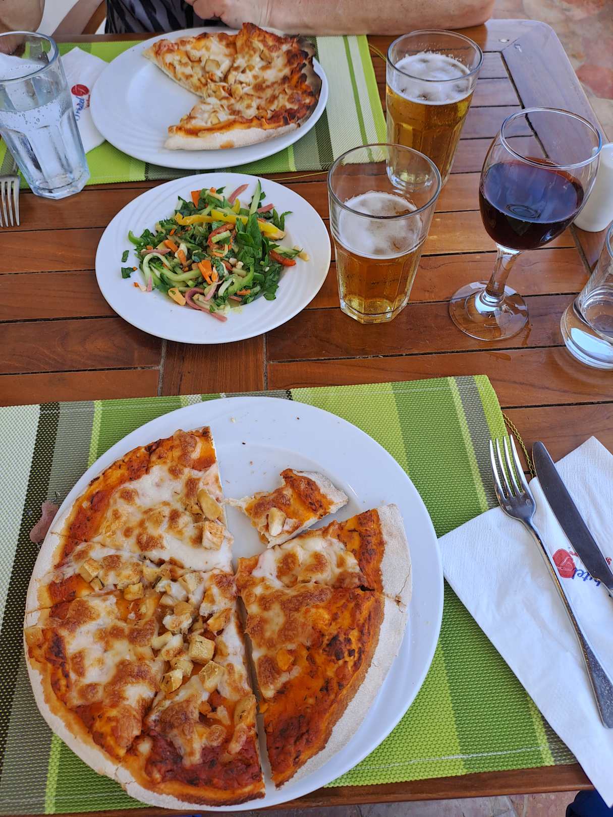 so kochend heiss war die pizza beim italiener, und so sau lecker, bier schmeckte wie immer schal, der rotwein ---nö der musste nicht dazu sein, schmeckte abgestanden chefsalat lecker
