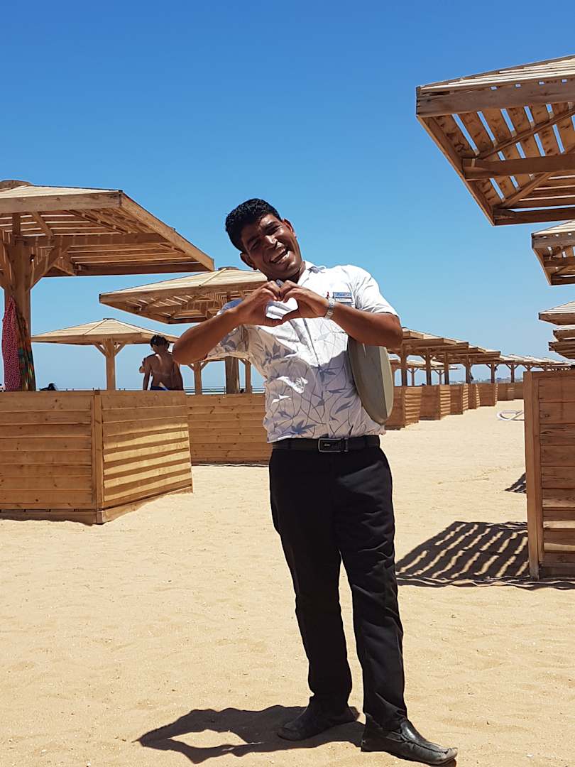 Unermüdlich versorgt Mahmoud Ibrahim am Strand die Gäste mit Getränken. Klasse.