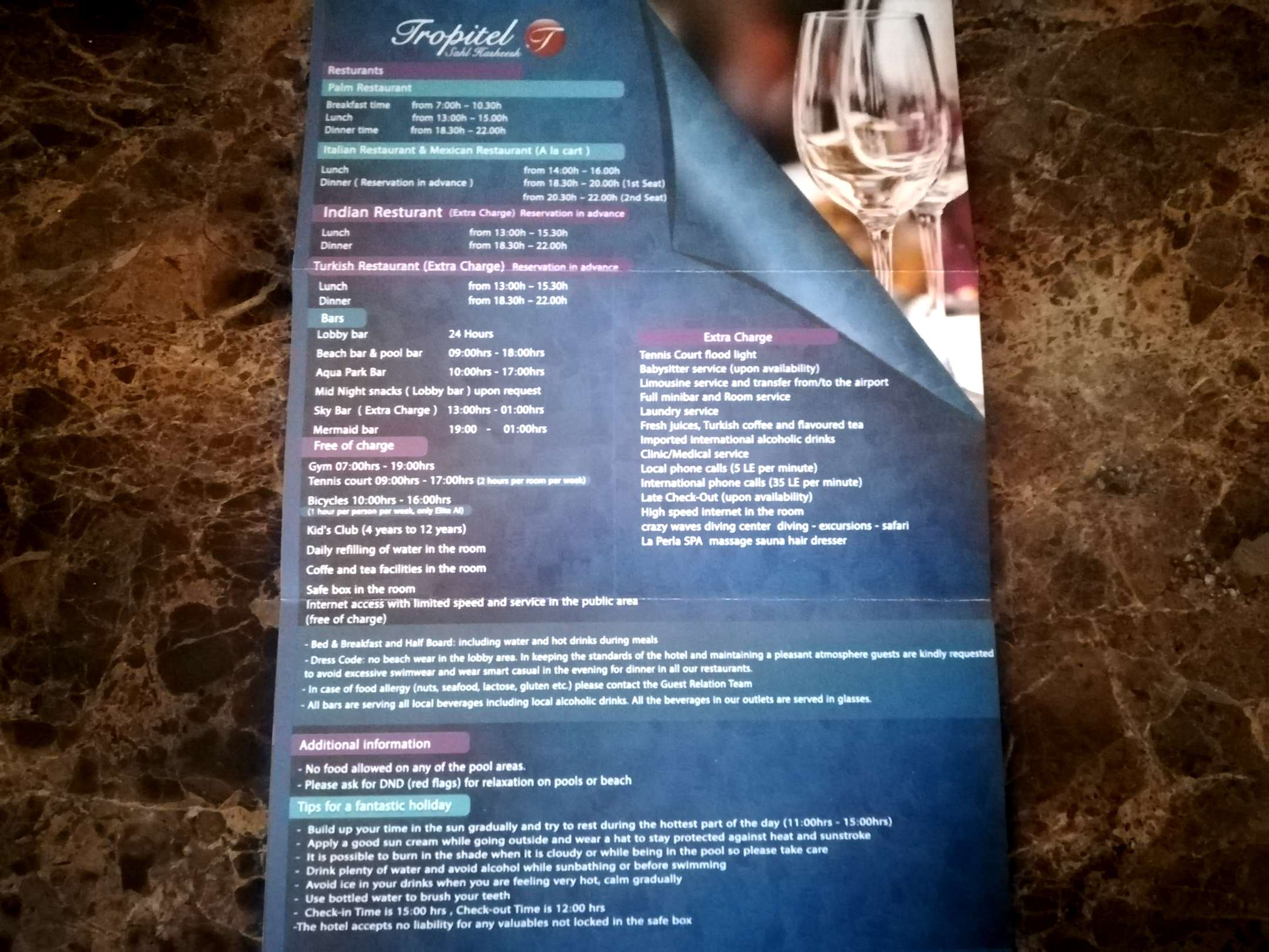 Gesamte Öffnungszeiten im Hotel.