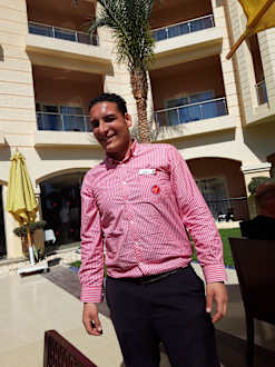 Unser Lieblingskellner Ibrahim-Youssef. Er hat uns den Urlaub versüßt.