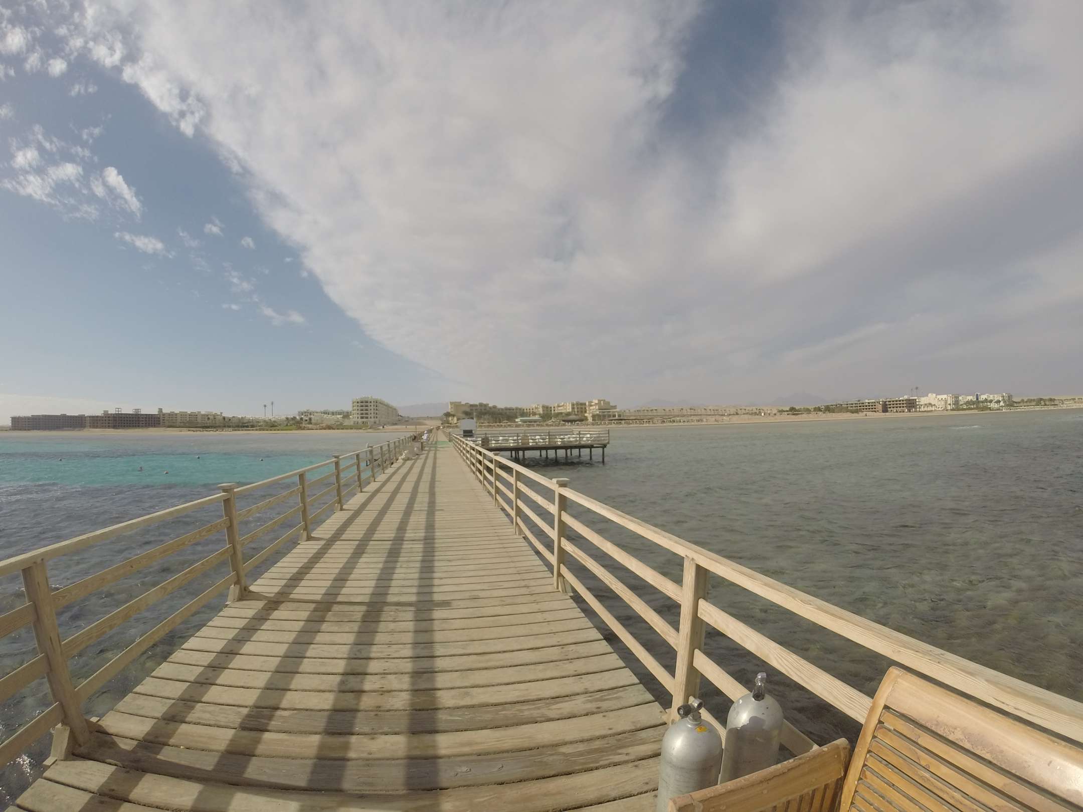 vom Steg links das fast fertige neue Hotel