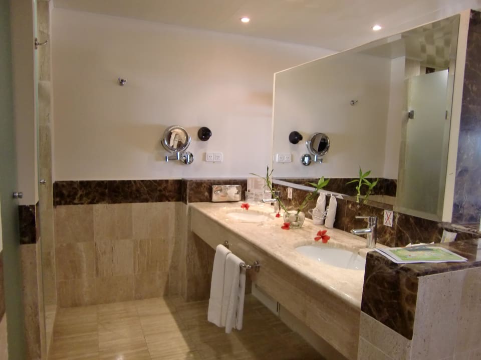 Doppelwaschbecken, links erste Tür Wc und dahinter die Dusche
