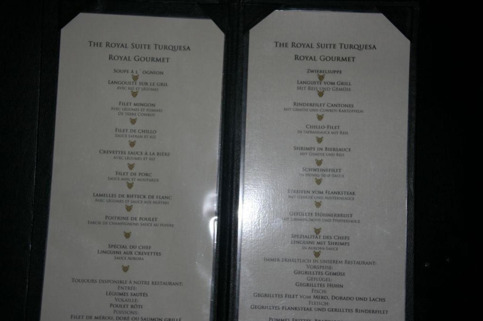 Speisekarte Gourmet restaurant Turquesa