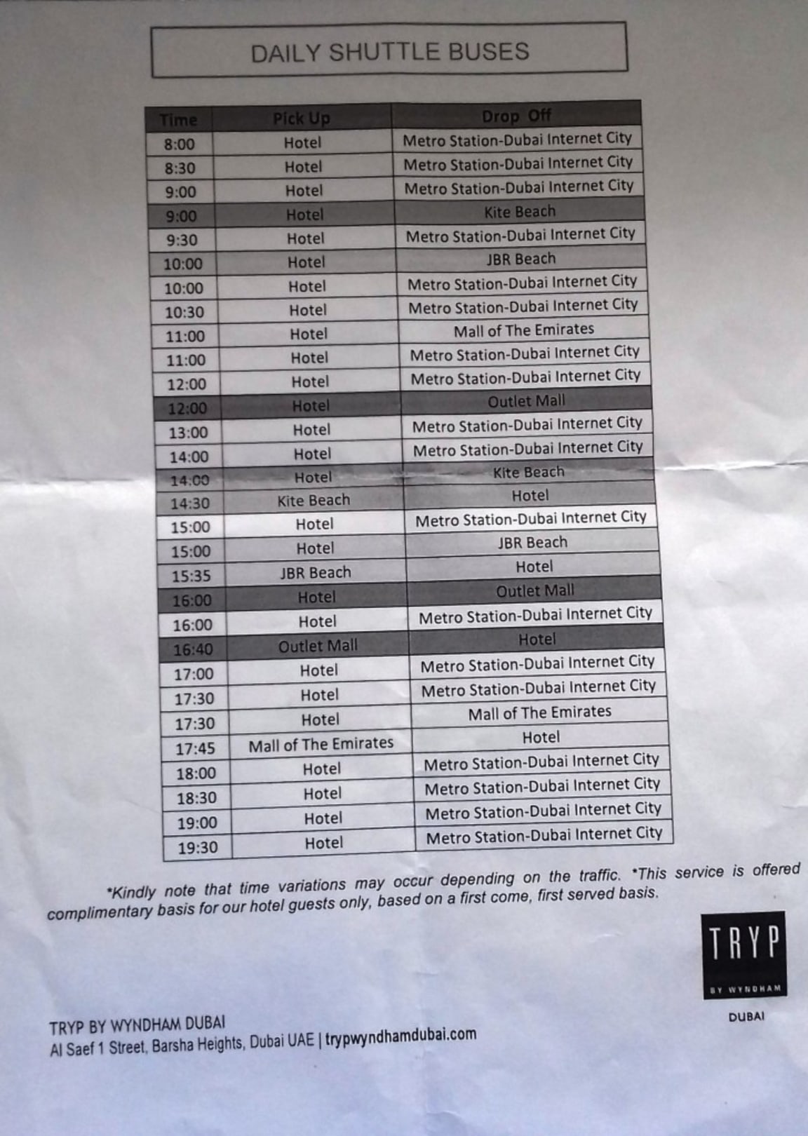 Shuttle Verbindung vom Hotel