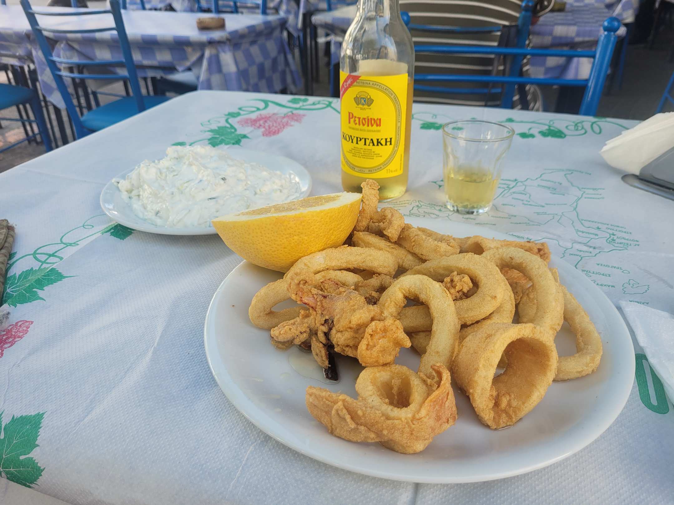 Frittierte Kalamari in der empfehlenswerten Taverne Manolo Mavrios