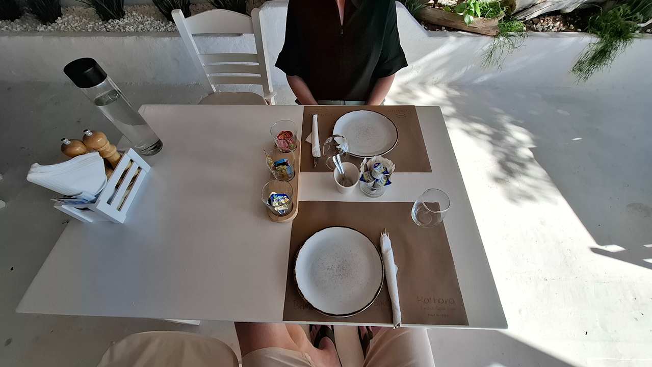 Tisch beim Frühstück nett gedeckt.