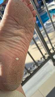 Meine Fußsohle nachdem ich barfuß den Koffer ausgepackt hatte. Zimmer 225