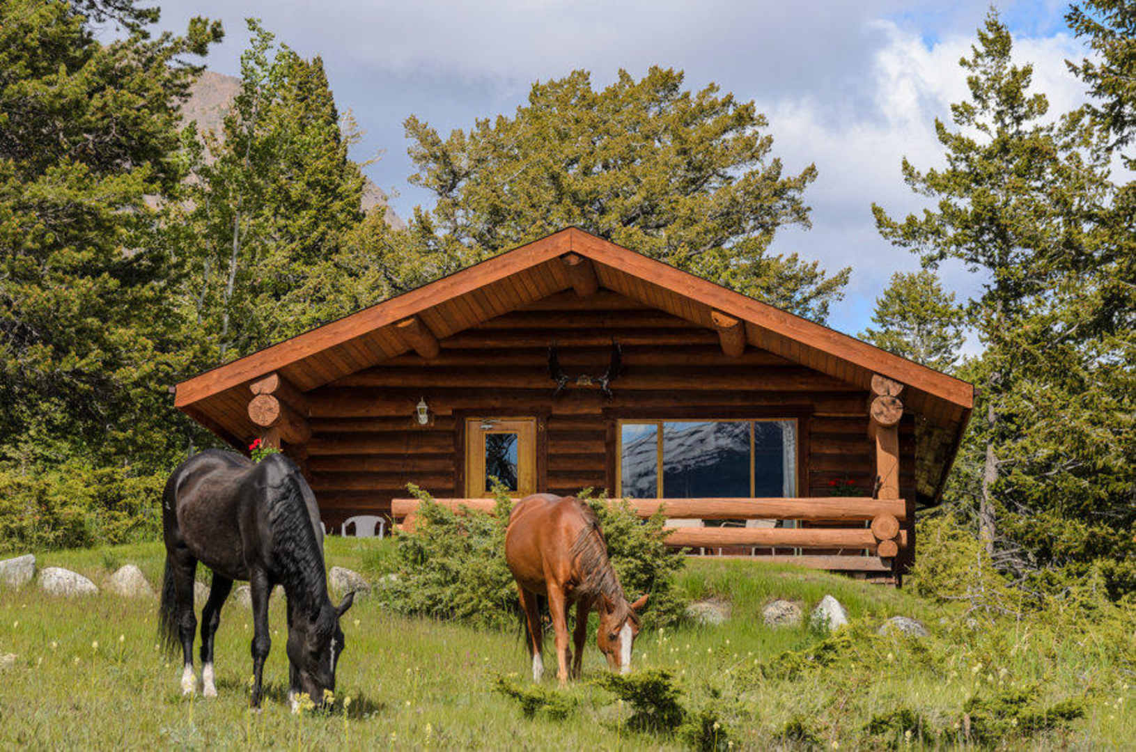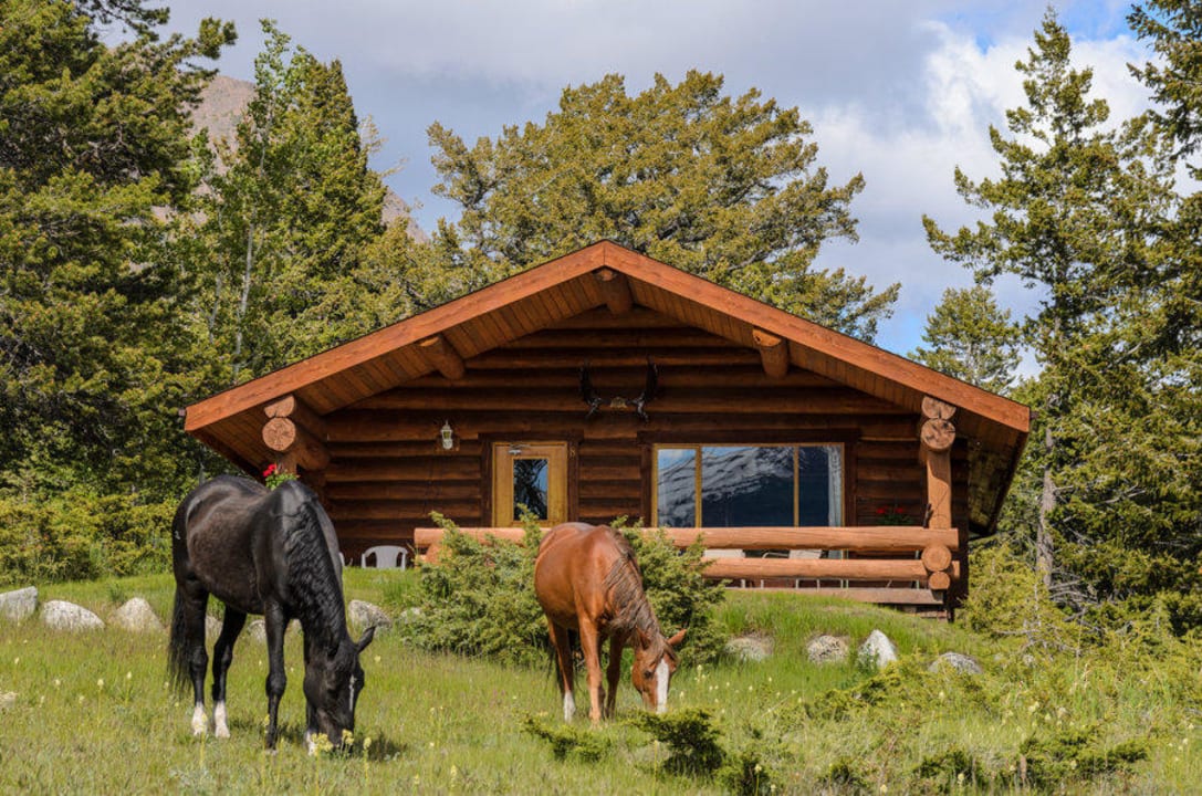 Horses in front of one of the cabins