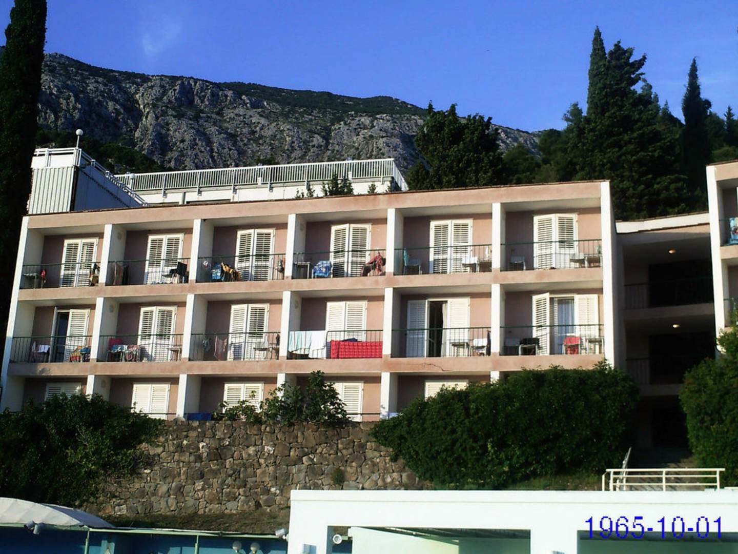 Bild zeigt das Nebengebäude, wo wir untergebracht waren. Von unserem Balkon hat man einen wunderschönen Ausblick auf das Meer. Das hat wenig entschädigt.