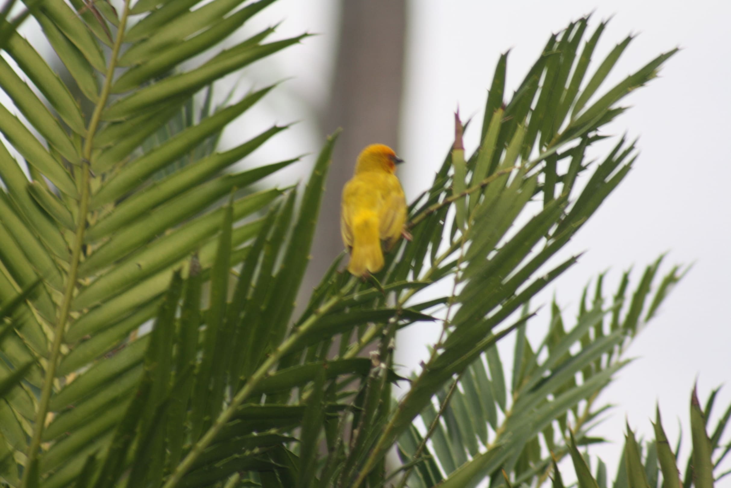 Webervögel in der Gartenanlage. Etwas unpassend drum herum wird Fußball gespielt :-(