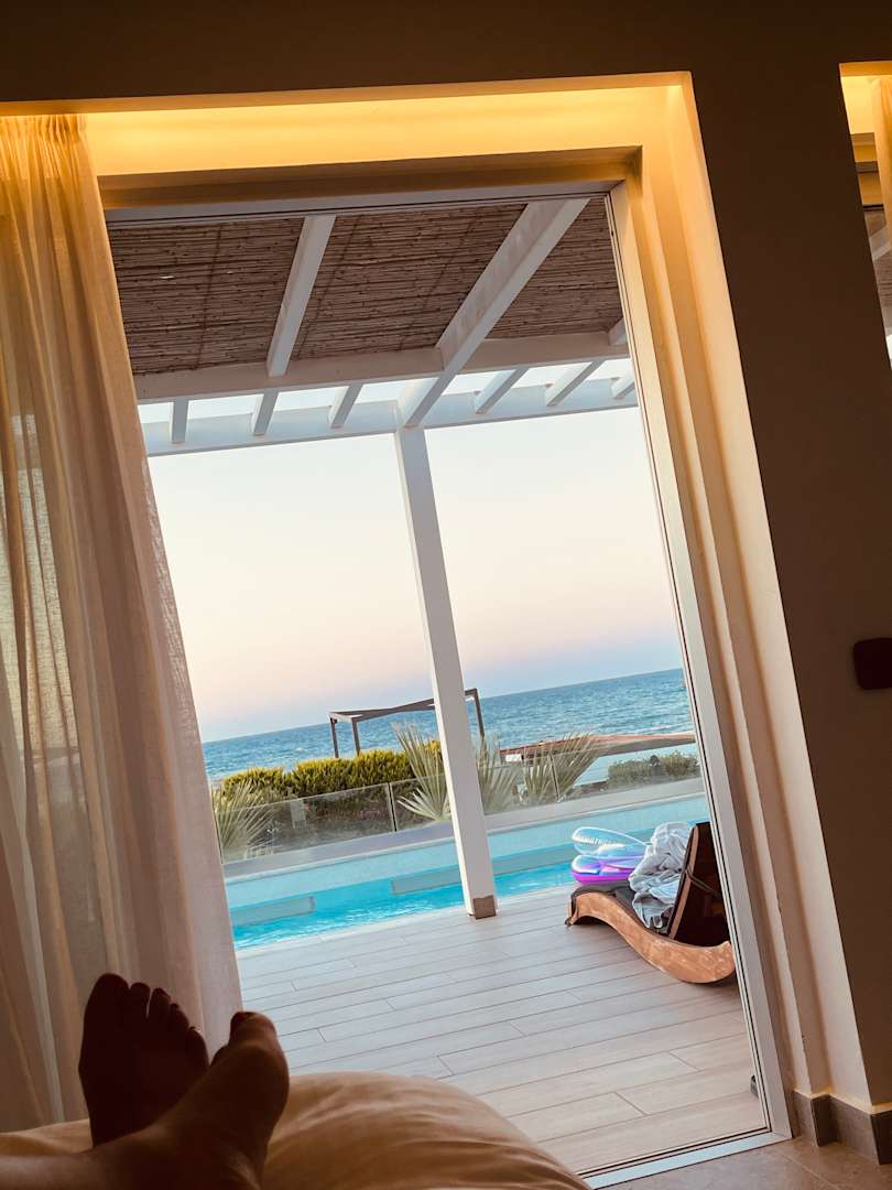 Blick vom Bett aus. Suite mit private Pool
