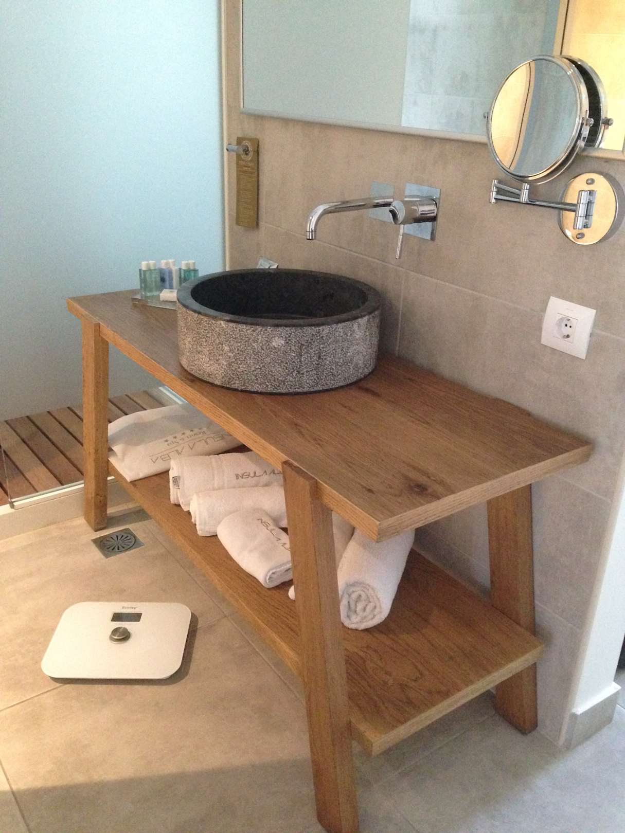 ZimmerWaschbereich, hinter dem Milchglas die Dusche,