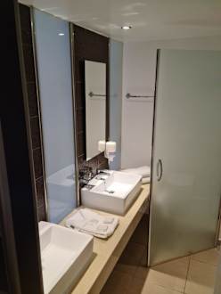 Bad in der Juniorsuite mit 2 getrennten Waschbecken.