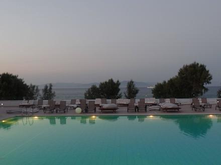 Poolanlage am Abend
